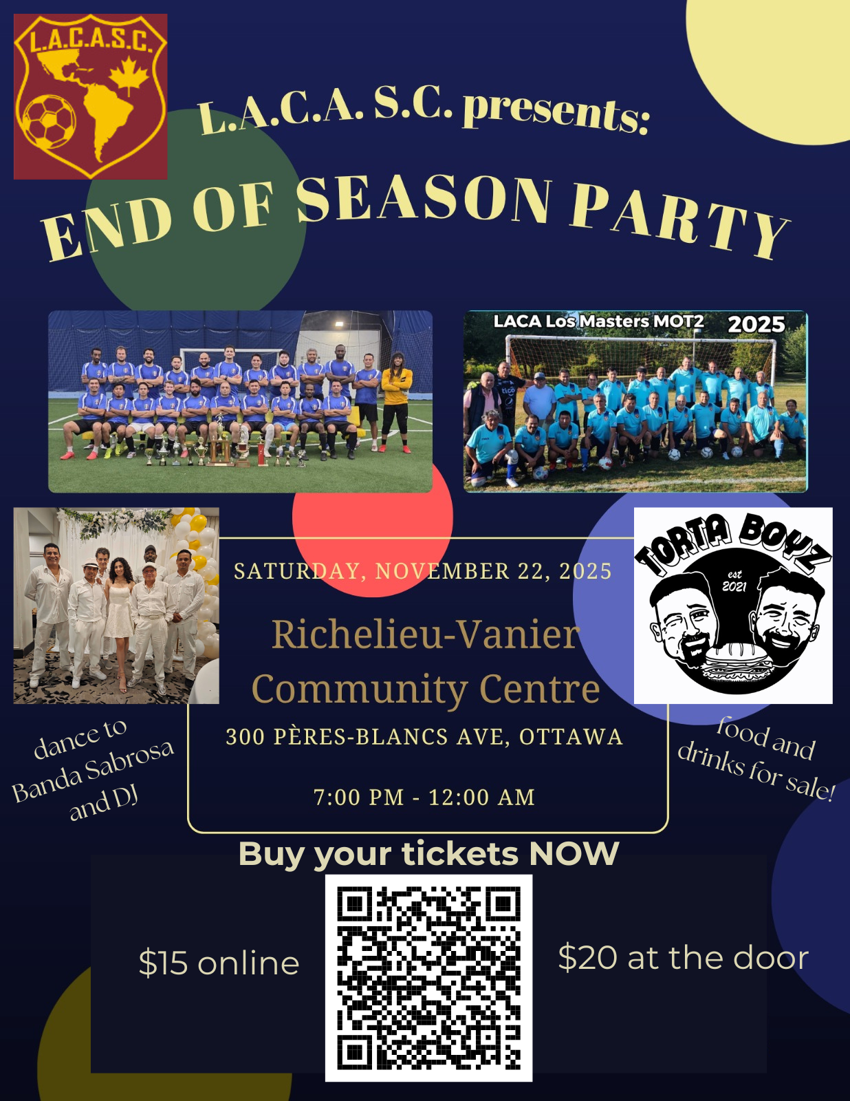 Welcoming all members and friends of our LACA Soccer Club in Ottawa for a fun evening with great food, drinks and a chance to dance the great music from Banda Sabrosa!
