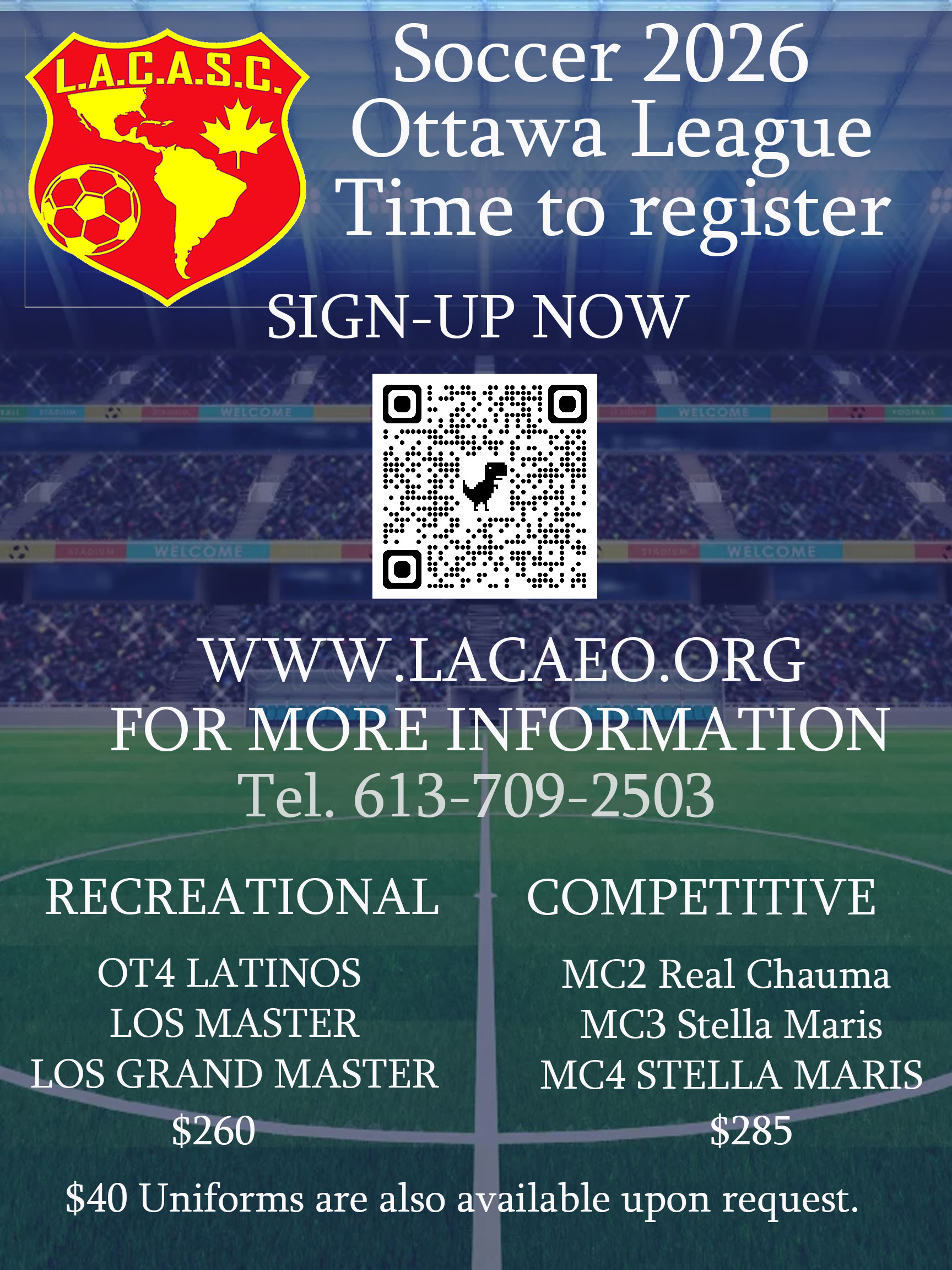 We are pleased to announce we just registered teams in various divisions in the OCSL. Please visit our Adults section for details